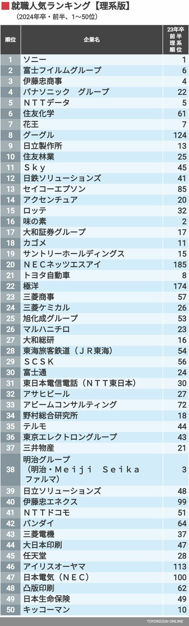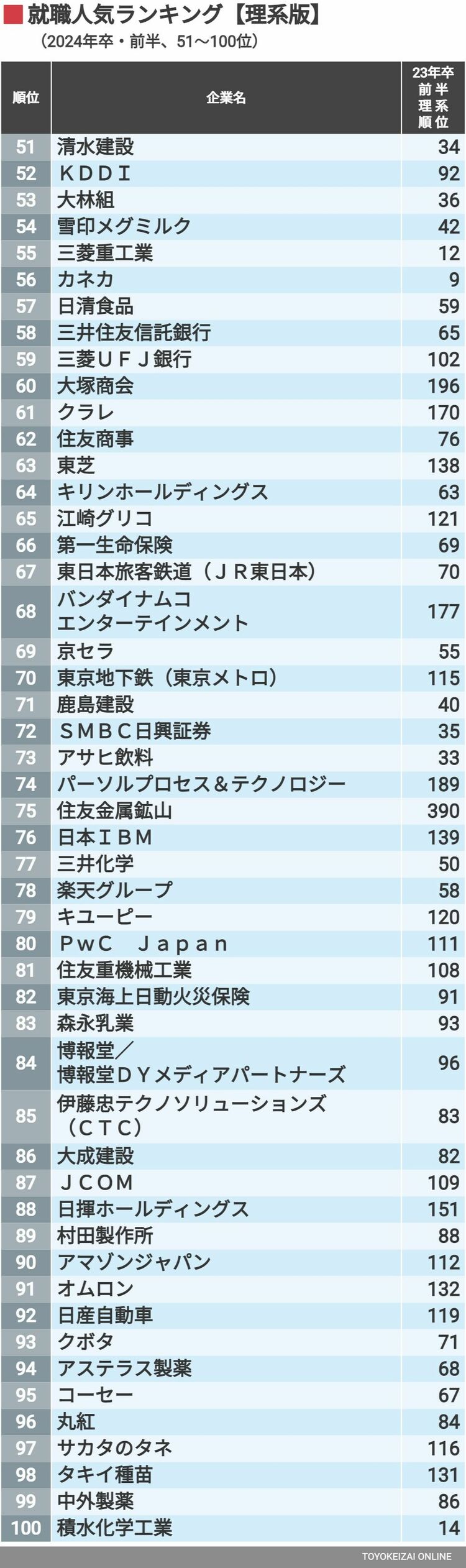 2024年 就職人気ランキング【理系版】